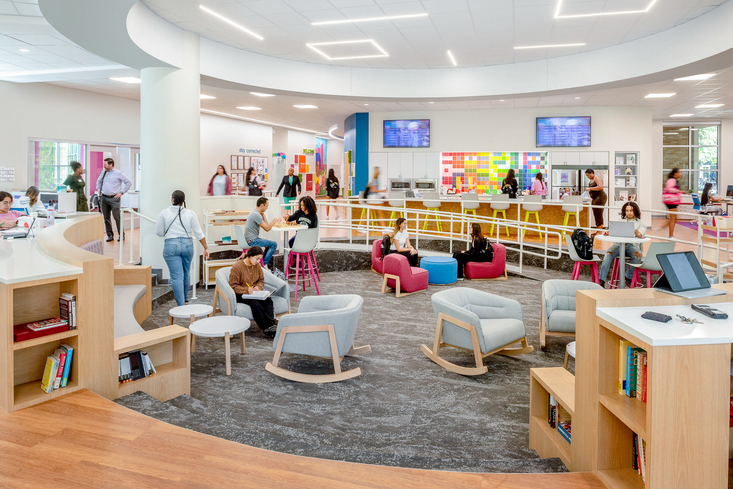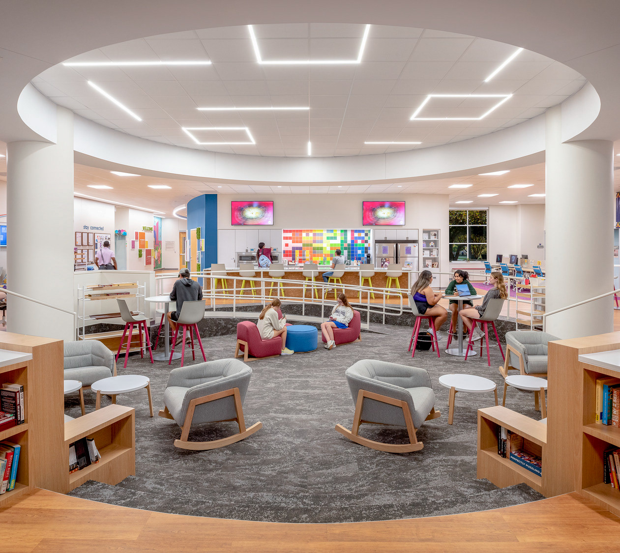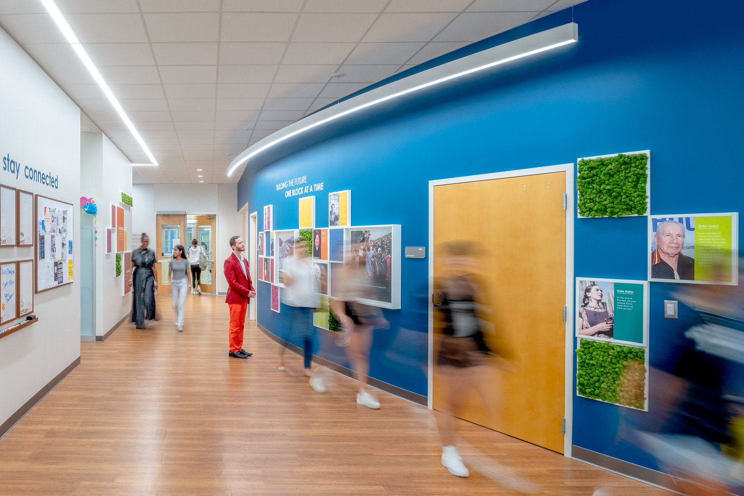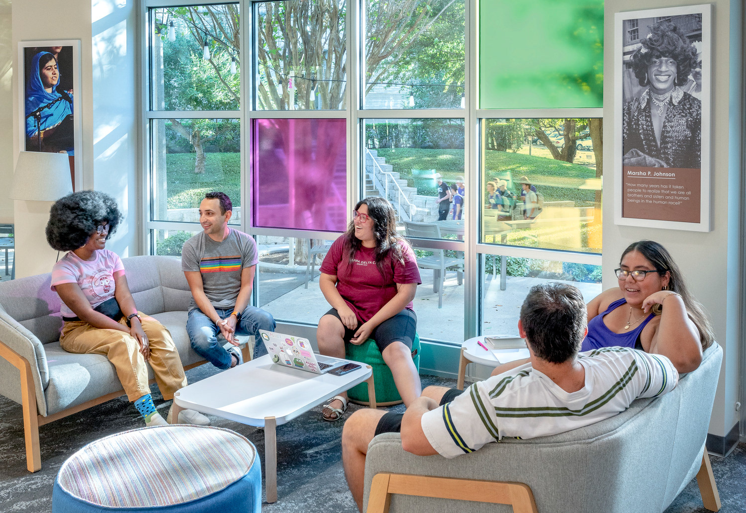 The Texas Christian University’s Intercultural Center is a dynamic space designed to be welcoming and comfortable for underrepresented communities, establishing a home where they feel seen, heard and celebrated. Outfitted with vibrant colors, unapologetic representation and mixed-use areas, the TCU ICC is a multi-cultural hub of student-led activities that recognize and appreciate underrepresented identities. Environmental graphic design completed with CannonDesign in 2021.