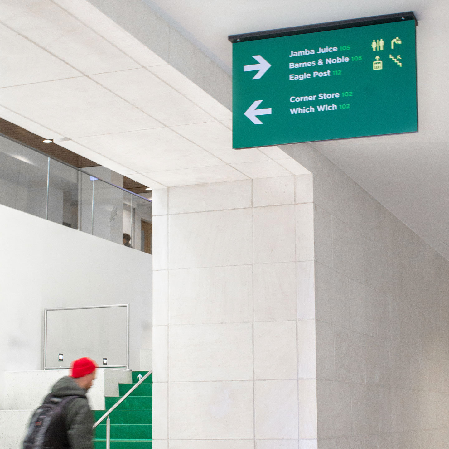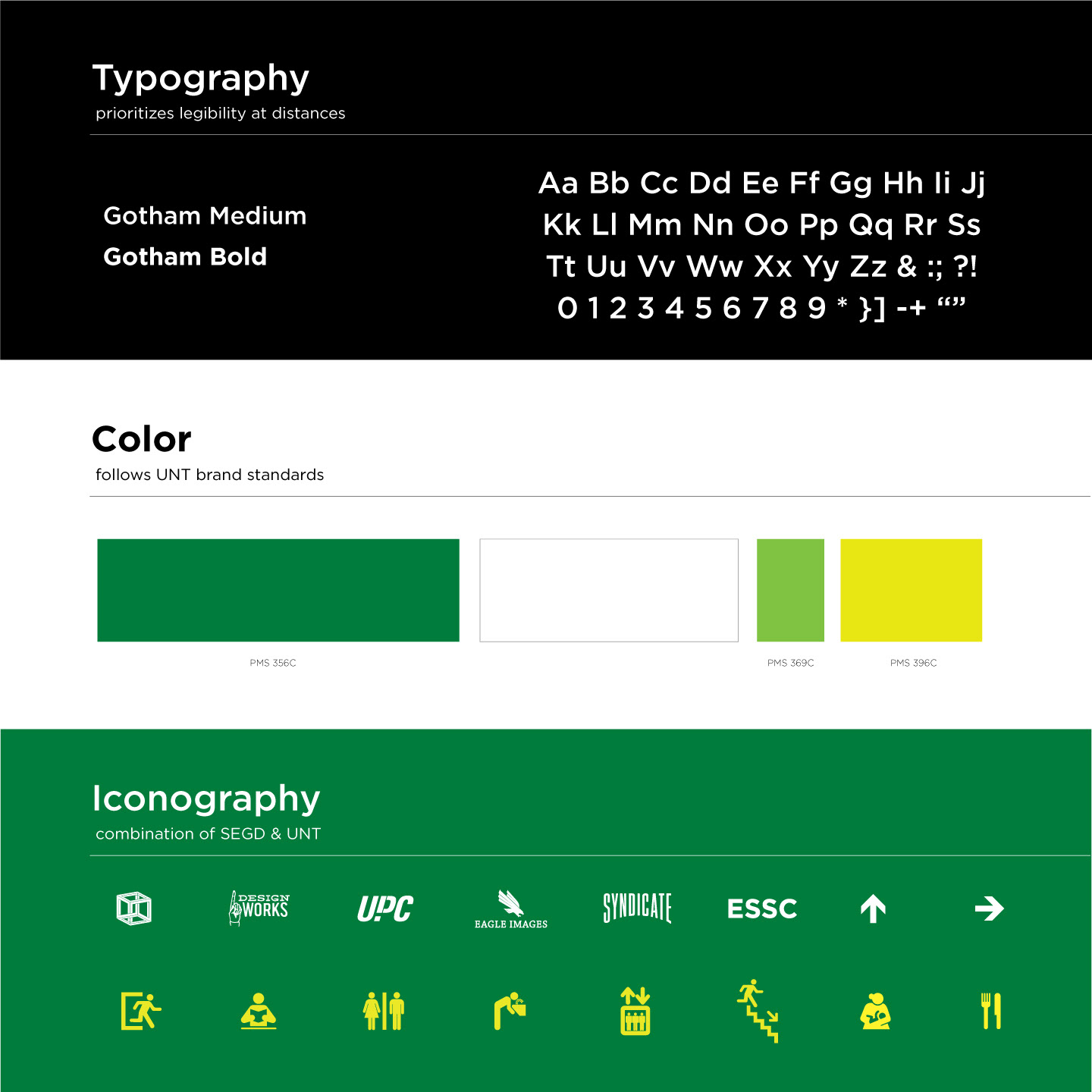 The University Union wayfinding system was developed & designed by Sharon Mathew.